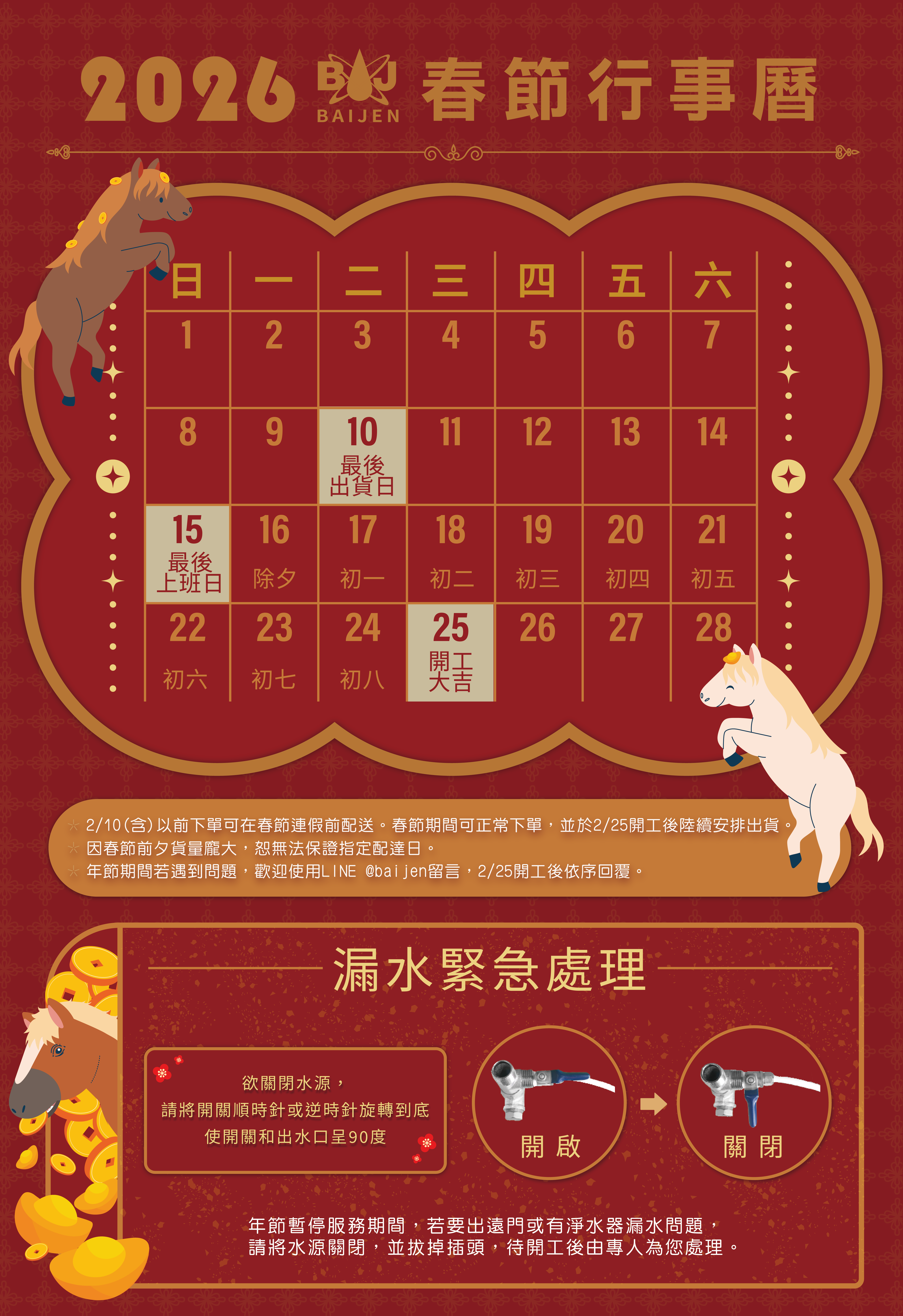 【公告】 2026春節門市公休 2/16~2/24